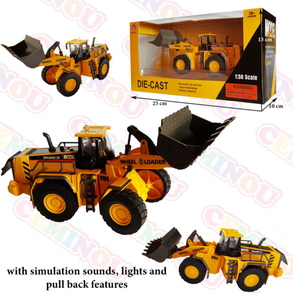 Die cast Mining Tipper truck with 1:50 scale ,pull back option with light and truck sound when initiated . Realistic and attractive